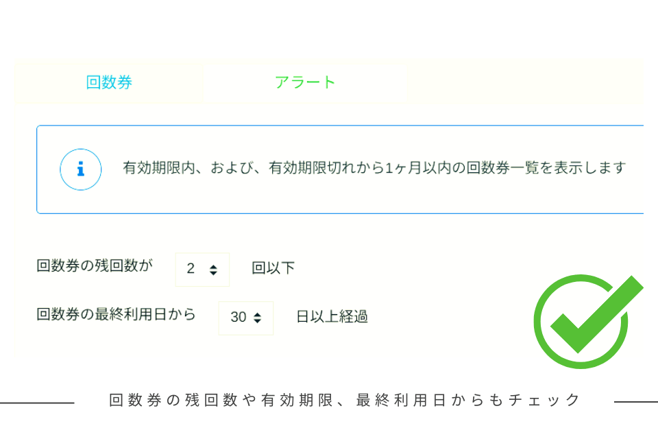 回数券は、店舗の収益を安定させる強力なツールです。この大切なツールを、曖昧な管理に委ねるのはリスクがあります。また次の回数券購入につなげるアプローチや、購入したけど”使われない回数券”にならないようにフォローする必要もあります。