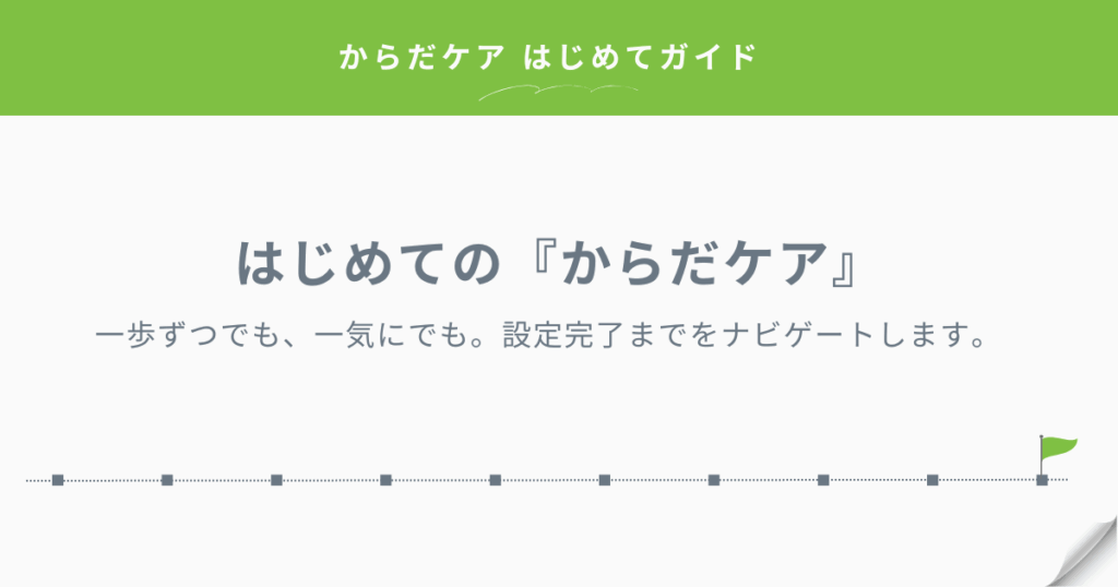 「からだケア」では、このマニュアルを「説明書」ではなく、「最短距離でゴールへ導く地図」としてご用意しました。